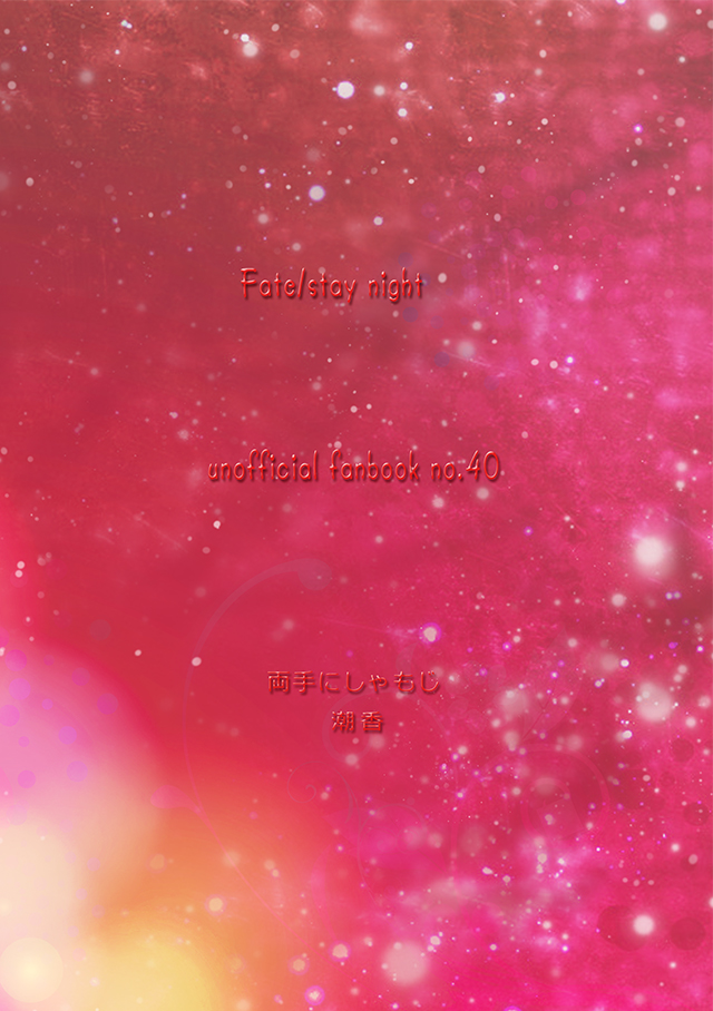 不安定な聖杯を支える為現界した全てのマスターとサーヴァントが各々生活を送る中、突然『ランサー』が消失する。ゆっくり壊れゆく弓と事態の好転を計る周囲の人々、そして…のお話。当然ウチの本ですから安定のハッピーエンドです。士郎出張ってます。